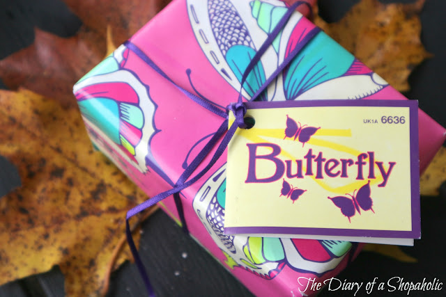 Butterfly -lahjasetistä paljastui Ro's argan body conditioner ja saippuapala, jonka nimeä en valitettavasti muista ja ehdin jo hävittää paketin. En oikein osaa edes sanoa miltä tuo saippua tuoksuu, aika erikoiselta kuitenkin. Kiva lahjaidea vaikka ystävälle :).